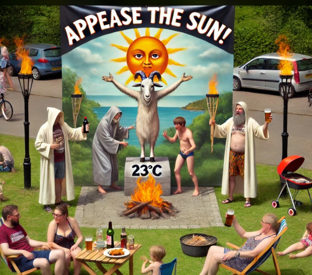 Let people enjoy the weather without demanding we all sacrifice goats to the climate gods every time the mercury twitches above lukewarm. Wildfires? Yes, they can happen. So can paper cuts, toaster fires, and being eaten by a badger. That doesn’t mean we cancel the barbecue and start digging underground bunkers. Have a pint, catch some rays, and stop acting like 23°C is a sign of divine wrath.