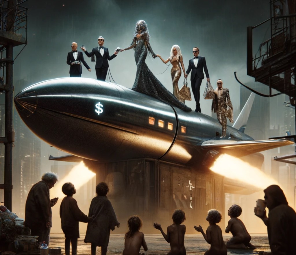 Of course they went to space—where else is left for people so detached from the real world? When you’ve commodified your entire existence, inflated your worth off selfie-fueled consumerism, and dined on the devotion of a distracted public, the only frontier left is the one Bezos built for bored billionaires. Let’s not pretend this launch was about empowerment or exploration. This wasn’t a moonshot; it was a joyride in a gilded phallus, cheered on by the High Priestesses of Brand America. And while they sipped champagne in zero gravity, nurses begged for PPE, and the streets filled with people who can’t even afford bus fare, let alone a seat on a space rocket.