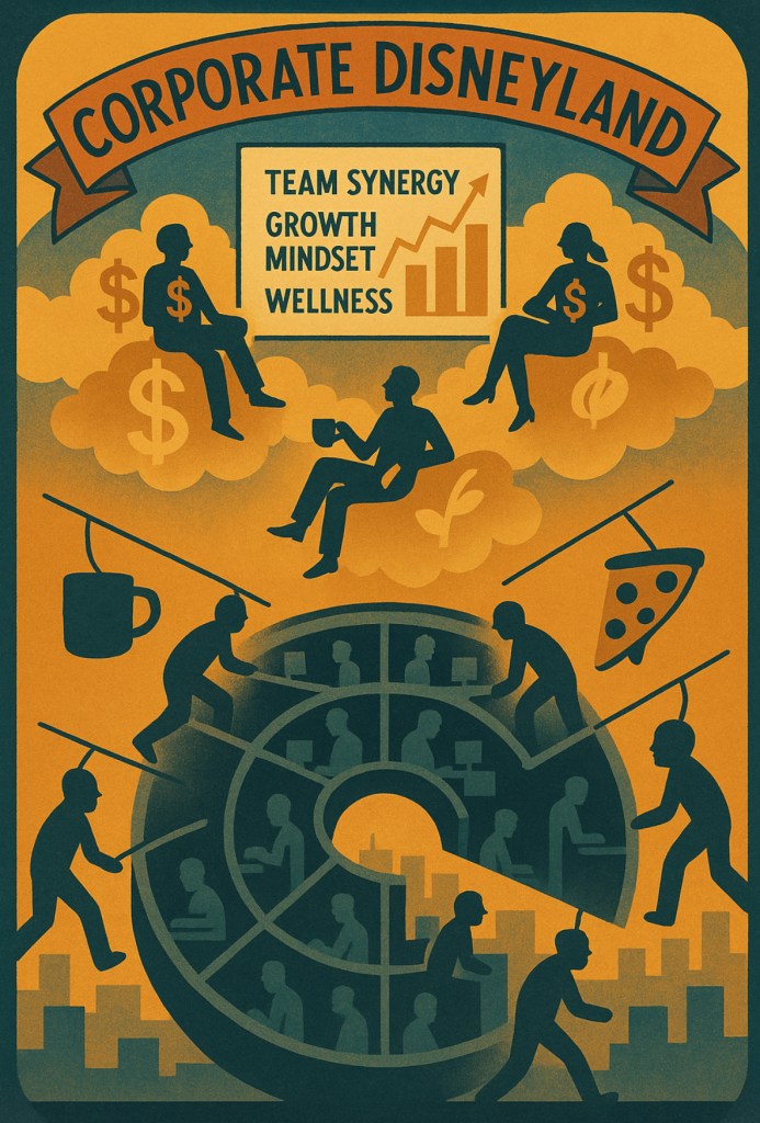 Welcome to Corporate Disneyland, where dreams go to die, and “team-building” means unpaid overtime. While the C-suite swims in stock options and “wellness stipends,” the rest of us are busy getting nickel-and-dimed under fluorescent lights. Think you’re part of the company family? Think again. You’re just an overextended cog in a machine that eats ambition and spits out burnout with a branded coffee mug.