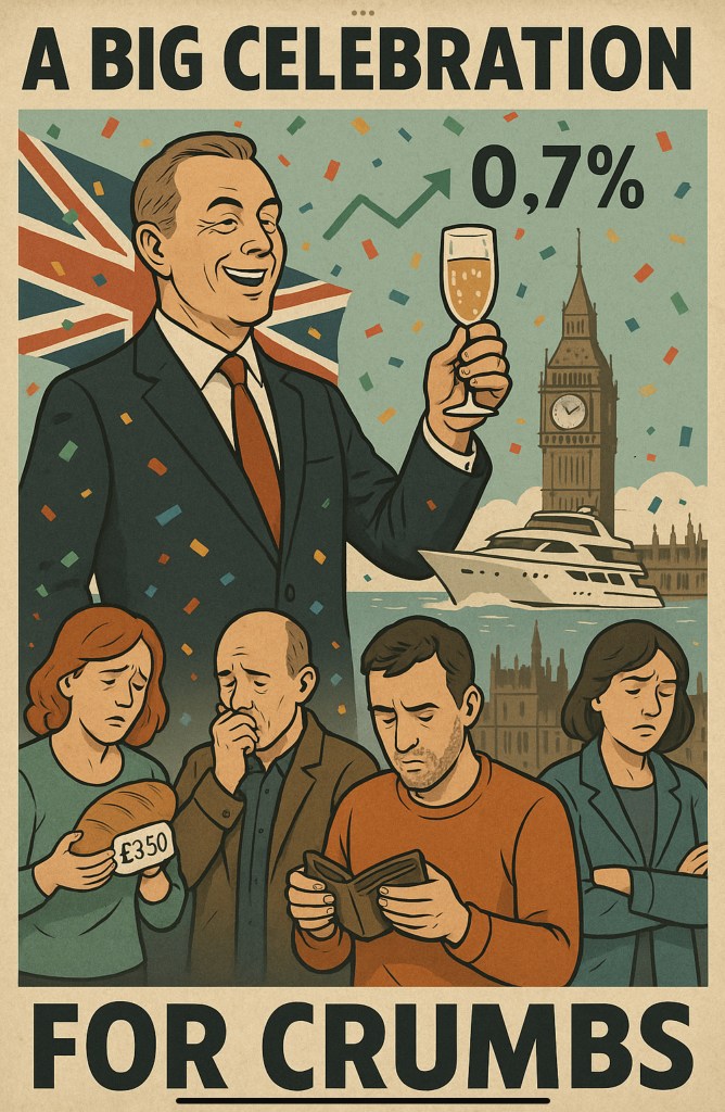 The rich toast this “recovery” with artisanal Prosecco while the rest of the country wonders if they can still afford electricity past 6PM. Growth for whom? That’s the riddle. Spoiler: Not you, unless you’re an investor with a vacation home in the Cotswolds and a daughter named Arabella in Swiss boarding school.