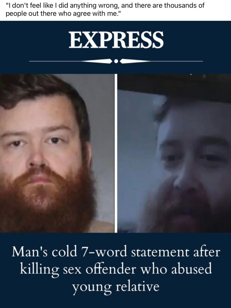 So when a man erases that threat with his own hands, is that the wrong action? Or is it the final, desperate act of a society that’s grown tired of second chances for the worst among us?