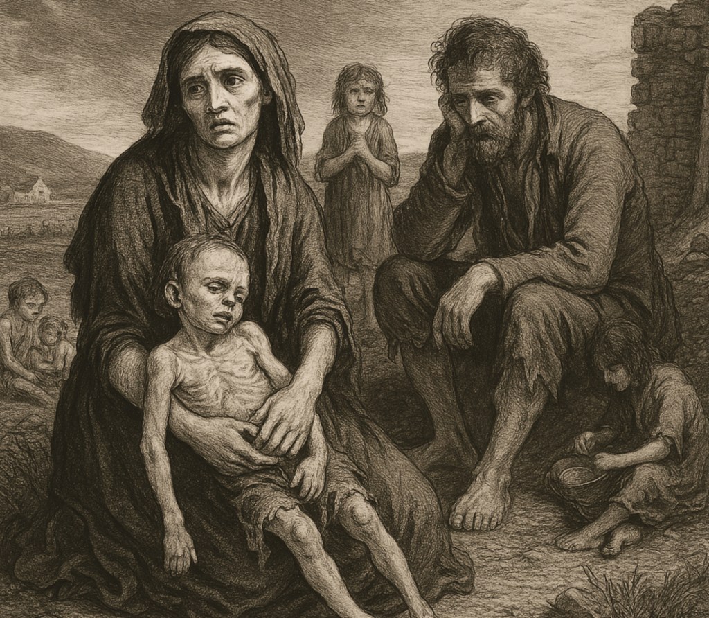 The Chagos story is modern — a Cold War eviction carried out to gift a military base to the United States. Ireland’s famine is older, but the template is identical: dispossession, exploitation, and the state treating human lives as expendable. During the Great Hunger (1845–1852), over a million died and two million were forced to flee. Crops rotted, but grain, livestock, and butter flowed to Britain. Evictions were rampant. Workhouses broke bodies and dignity alike.