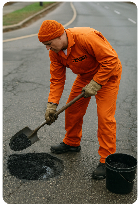 🛠️🚓Britain’s roads are so bad the government has decided only one group is fit to save them: criminals. Yes, forget about prison bars — welcome to Her Majesty’s Highways, where burglars, fraudsters, and shoplifters trade orange jumpsuits for hi-vis jackets and a shovel.