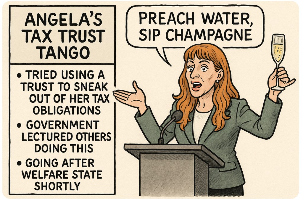 💸🤦‍♀️So first things first: Angela Rayner tried using a trust to sneak out of her tax obligations. Next, she and her government lectured everyone else for doing the same thing. And now? We’re told this government is about to go after the welfare state—armed with the same kind of top-tier legal advice that landed Rayner with a £40,000 tax bill. If this circus has a theme tune, it’s definitely “Oops, We Did It Again.” 🎶🙄
