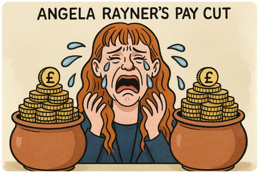 💸🦎Angela Rayner has fallen from the penthouse suite of political pay packets to the budget basement of “just” £93,904 a year. Poor thing. Once upon a time (well, last week), she was a double-jobbing juggernaut—Deputy Prime Minister and Housing Secretary—pulling in a combined salary north of £227k. Now, thanks to an ethics investigation that decided she was playing fast and loose with ministerial standards, she’s back on the back benches with nothing but the “basic” MP wage to console her.