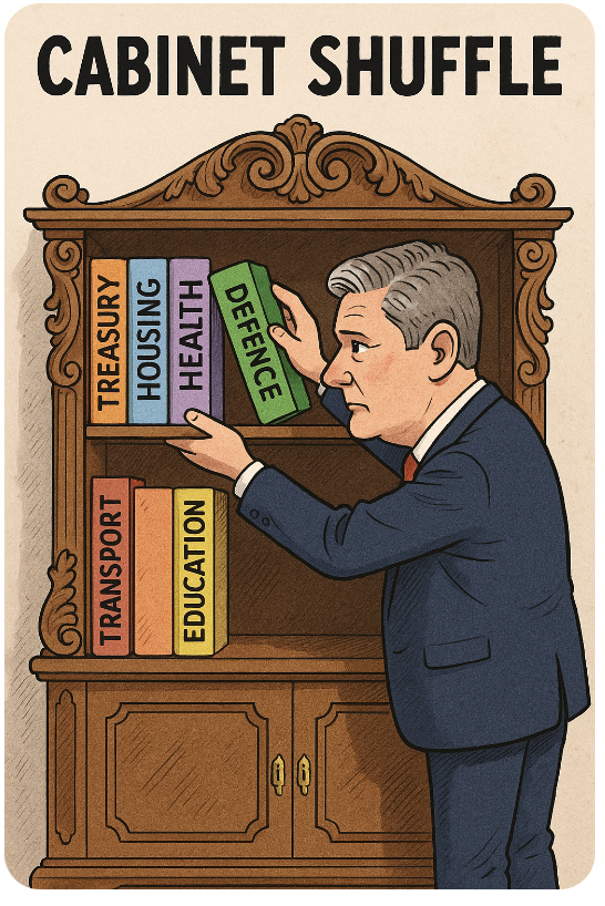 - Top team overhauled – Treasury, Health, Defence—nothing sacred. Sir Keir decided to use Rayner’s scandal as the perfect excuse to yank the carpet out from under his own Cabinet. Imagine going to work on Monday and finding out you’re now head of rocket science instead of accounts payable.