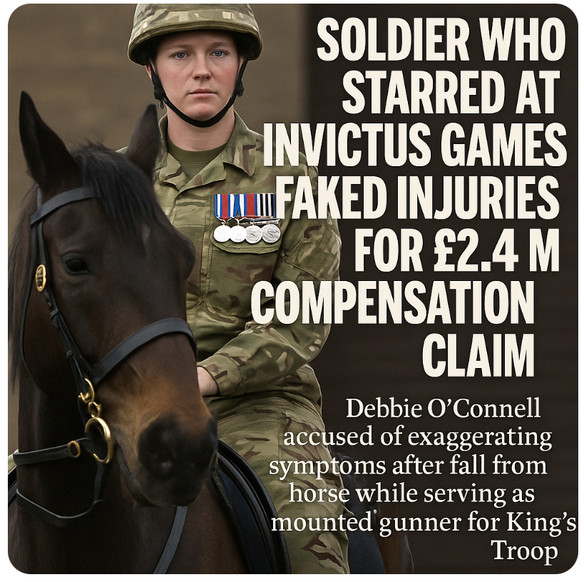 Turns out not every inspirational war story is medal-worthy—some come with a calculator attached. Former soldier Debbie O’Connell, once paraded as a shining star of the Invictus Games, now stands accused of faking or wildly exaggerating injuries after a horse fall while serving as a mounted gunner for the King’s Troop. The bill? A jaw-dropping £2.4 million compensation claim. Because nothing says “sacrifice for country” like turning battlefield grit into a personal pension plan.