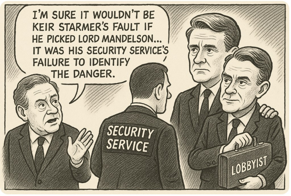 🕵️♂️🎩Douglas Laird, the freshly minted minister still polishing the price tags on his new suit, has generously reassured the nation that poor Keir Starmer is blameless if he decides to cozy up to Lord Mandelson. Nope, apparently that’s the fault of Starmer’s “security service” for not spotting the danger. Because, of course, when it comes to political bedfellows, personal judgment is strictly optional.
