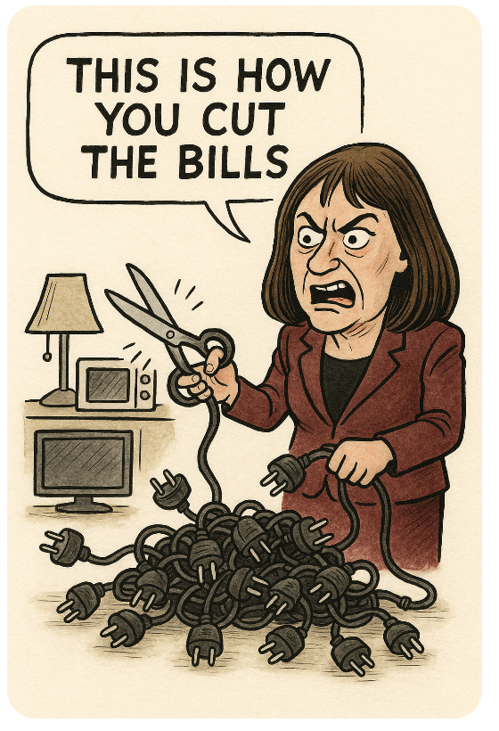 Meanwhile, households are staring at bills so high they could be mistaken for ransom notes. “Pay up or the lights go out.” But hey, at least the Chancellor is considering doing something, which is very on brand for British politics: announce the possibility of thinking about maybe acting later. 🔮💸