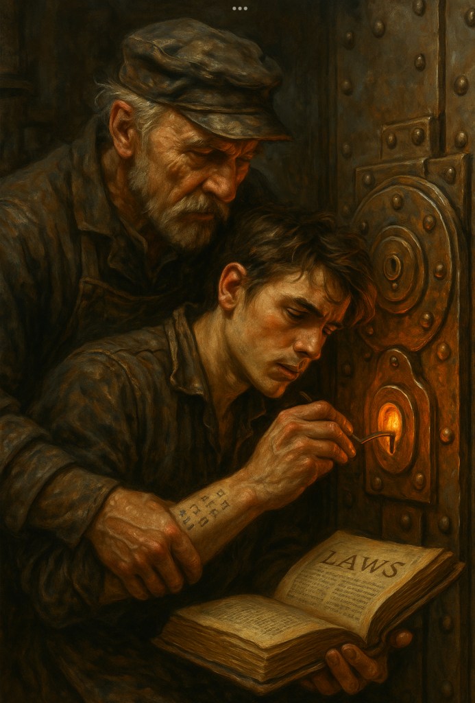 In the rusted belly of District Seven, doors didn’t open with keys; they listened for names. The last true locksmith, Old Marlow, kept a ledger of “laws”—not statutes, but patterns: how grief sounded in a hinge, how jealousy warped a latch, how kindness softened tumblers so even worn teeth could turn them.