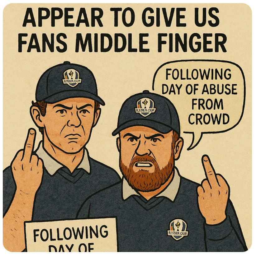 When Ryder Cup hecklers pushed their luck, Rory McIlroy and Shane Lowry responded not with polite golf claps but with the universal symbol for “kindly shut up”: the middle finger. Yes, while the Americans screamed from the gallery, the Irish duo offered a gesture so blunt even the most belligerent fan could grasp it without subtitles.