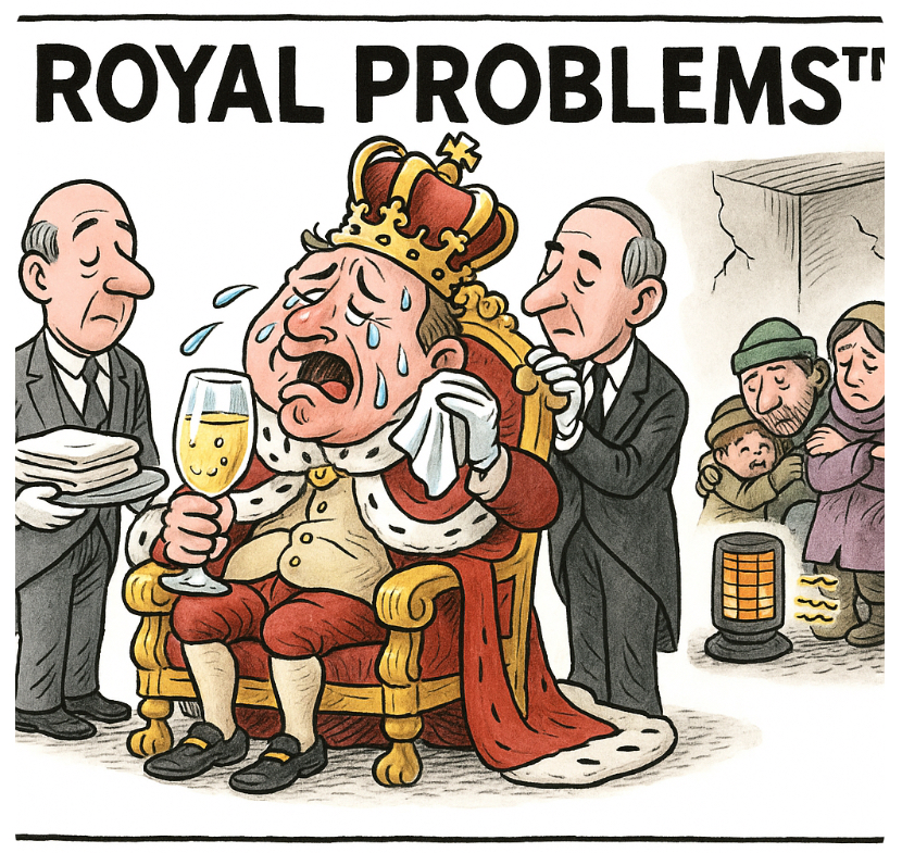 Ah yes, another royal “annus horribilis.” Poor lad — cancer-stricken wife, cancer-stricken father, and a brother who’s turned into a walking Daily Mail headline. Tragic. Except, here’s the rub: working-class families are living through the exact same hell without the cushion of castles, chauffeurs, and a taxpayer-funded army of yes-men.