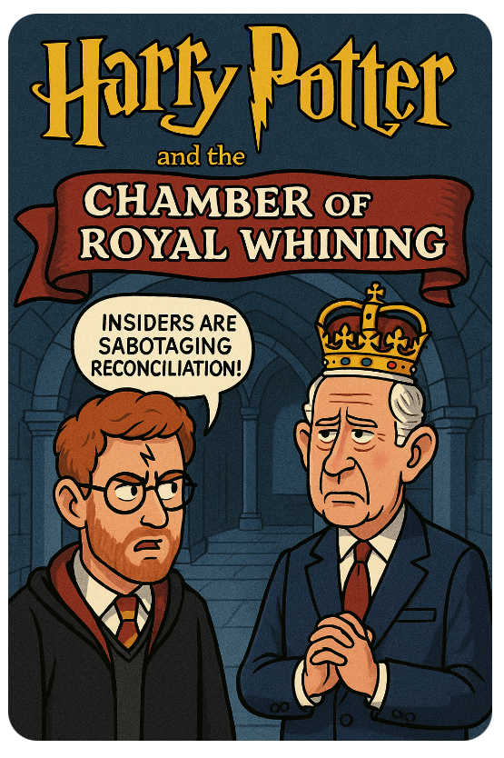 This isn’t a monarchy anymore—it’s a soap opera with better hats. Harry claims mysterious palace figures are sabotaging reconciliation, which makes the Firm sound less like a royal household and more like Voldemort’s inner circle plotting from the shadows. Meanwhile, Charles, Britain’s part-time eco-warrior and full-time monarch, is caught between being a dad and being a crown-wearing HR department.