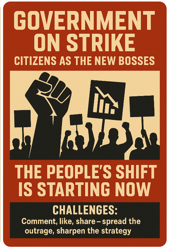 If they won’t do the job, we will. No, not by storming buildings with cosplay and conspiracy signs. By doing the one thing the ruling elite still can’t handle: peaceful, mass, organized resistance. History backs it. Gandhi, the Civil Rights Movement, Solidarity in Poland—all achieved seismic change without firing a single shot. Violence breaks movements. Discipline builds them. The plan? Protests outside courthouses and offices. Strikes that reveal political negligence without wrecking communities. Boycotts that choke profiteers. Petitions and lawsuits that keep the system sweating. And yes, voting, so the same clowns don’t keep pulling the plug on society.