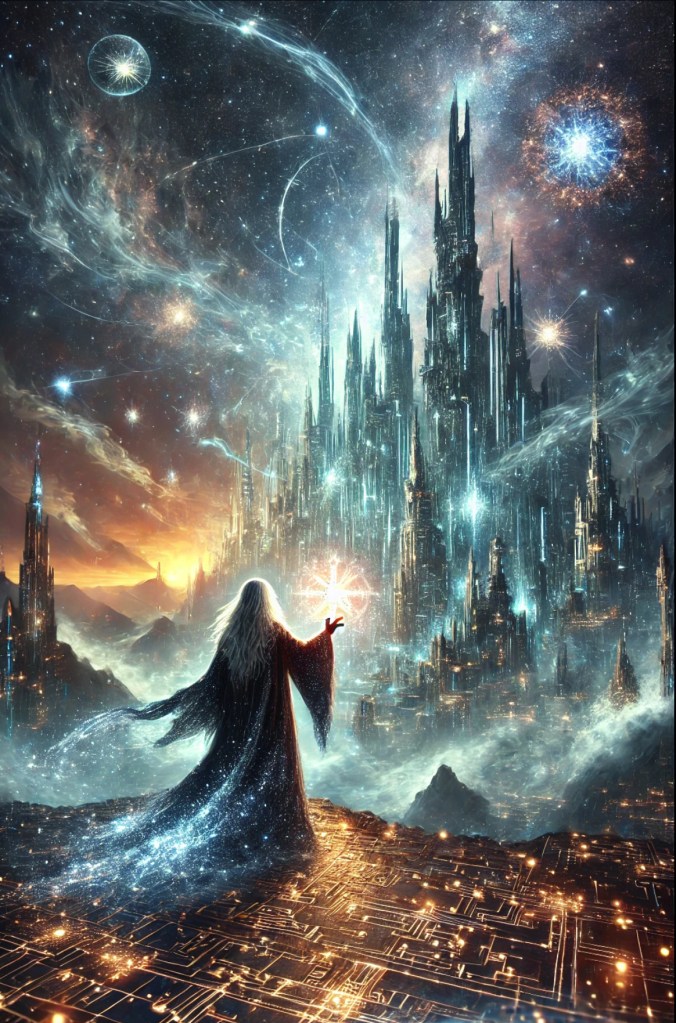 For a thousand cycles, the wanderer known as Kael had built his citadel of light atop the ruins of forgotten constellations. Each time he neared completion, the walls of his creation would dissolve into starlight, as if the heavens themselves mocked his effort. But he always began again—gathering shards of knowledge, stones of code, and the dust of dreams—until, one final dawn, his work stood nearly whole.