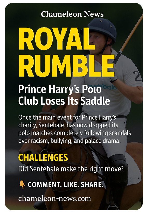 🏇👑Once the glitzy, champagne-fueled centerpiece of Prince Harry’s charitable life, Sentebale’s polo matches have now been quietly sent to the royal knackers’ yard. The charity, co-founded by the Duke of Sussex to support vulnerable children in Lesotho, has apparently decided to rein in its royal connections — all thanks to the latest scandal involving racism, bullying, and the usual Buckingham melodrama. 🎭