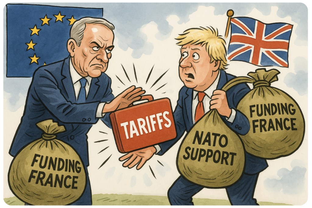 So, let’s get this straight. Britain funds NATO missions, props up the defence umbrella keeping Europe safe from Russian roulette, and pays France millions to not wave at smugglers from the shore. The EU’s response? “Cheers, mate—now pay extra on your exports.”