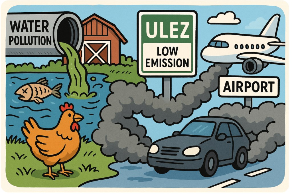 Water companies are dumping raw sewage like itβs performance art, chicken farms are leaking nitrogen like itβs confetti, and everyoneβs response isβ¦ letβs expand ULEZ! Because apparently, your Ford Fiesta is a greater planetary threat than thousands of tons of poultry poop drifting toward the nearest trout stream. π£