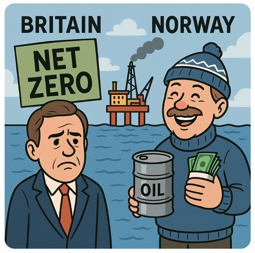 Why are we the only ones following the net-zero rulebook like it’s gospel? Why is Britain allergic to energy independence while Norway cashes in and keeps its eco halo? Are we being responsible — or just spectacularly naive?
