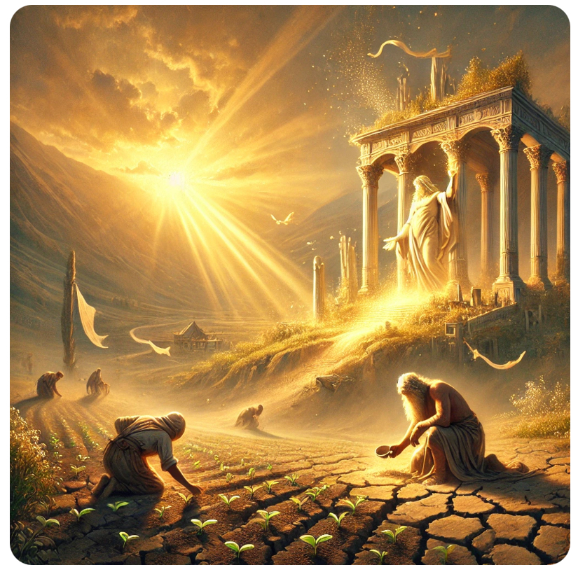 So the villagers began to work without them. They carried water in hollowed gourds, dug furrows, shared crusts of bread, and learned again how to live shoulder to shoulder. The pavilion collapsed behind them, its banners shredded into rags that fluttered like pale ghosts.