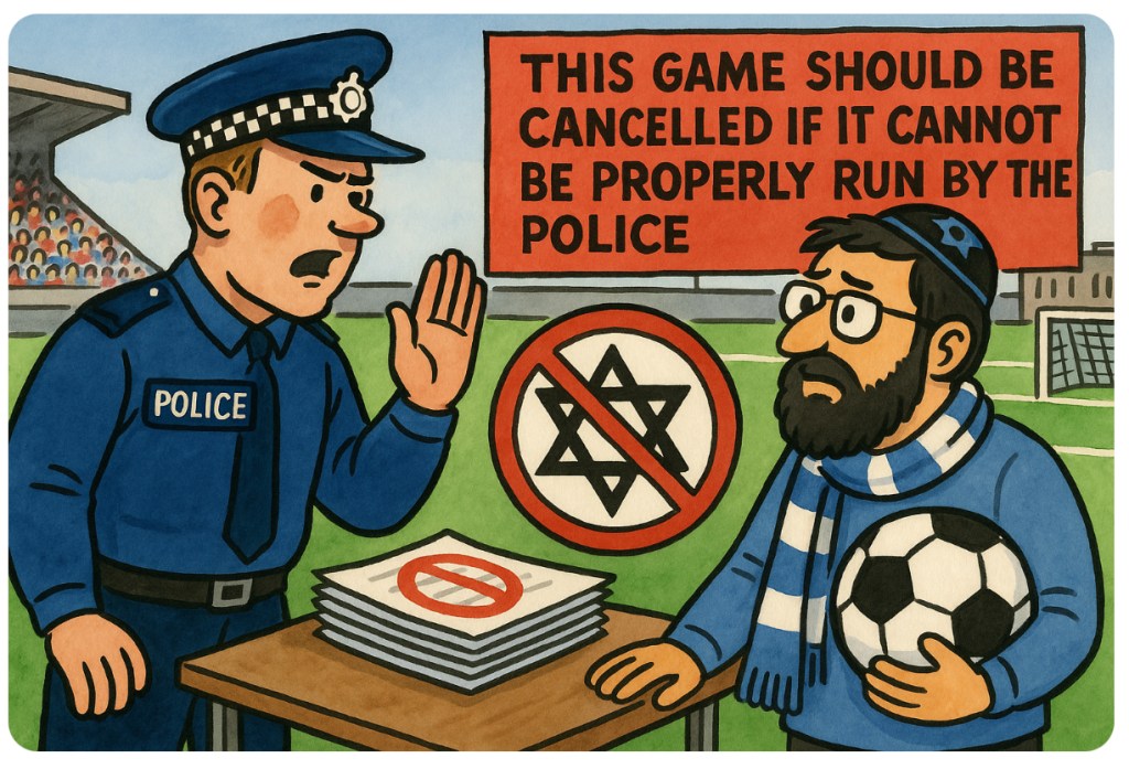Once upon a time, football was about who could shout the loudest, not who you prayed to. But now, in the name of “safety,” Jewish supporters are reportedly being told they can’t attend matches — because someone else might behave badly toward them. It’s the policing equivalent of grounding the victim so the bully doesn’t get upset. 👏