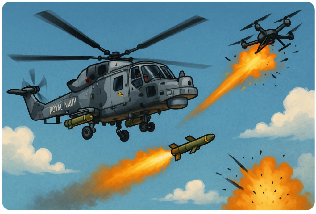 The Wildcat helicopters, once mostly known for patrolling grey seas and making pilots carsick, now sport missile pods capable of vaporising enemy drones, explosive dinghies, and anything else that flutters, floats, or irritates. Defence chiefs call it “a significant leap forward.” The rest of us call it “finally something that works.”