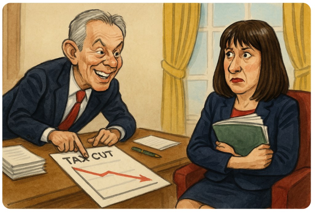 But here’s the real show: has anyone checked whether Rachael Reeves got the memo? Because nothing says “team unity” like your party’s most famous ex-leader freelancing fiscal advice that flatly contradicts your official policy. Somewhere in Treasury HQ, a printer just screamed in despair as Reeves’ tax plans spontaneously combusted.