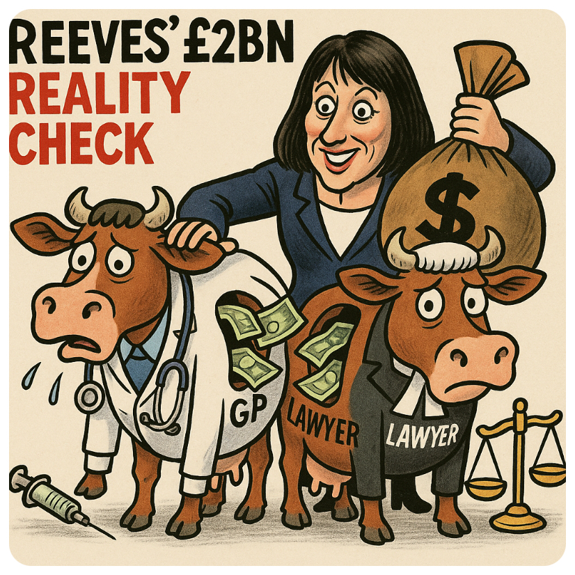 💷💉⚖️The Chancellor’s latest brainstorm? A £2 billion “fairness” grab from doctors and lawyers working through LLPs. Translation: raid the people keeping us alive and (barely) lawful. Because apparently, the NHS crisis needed a subplot — and the taxman just found it.