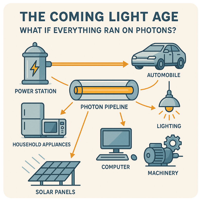 💡🌍Behold, the Light Age — where photons aren’t just showing you the future, they are the future. Gone are the days of clunky wires, wheezing grids, and toxic battery farms. We’re talking about power that moves like gossip at a high school reunion: fast, frictionless, and everywhere. 🌈⚡