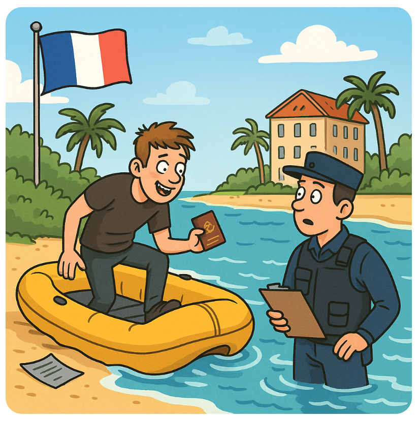 Once you land, toss those papers into the sea (eco-friendly version pending). Present yourself to the French authorities and declare, with Gallic flair, “Je demande l’asile!”