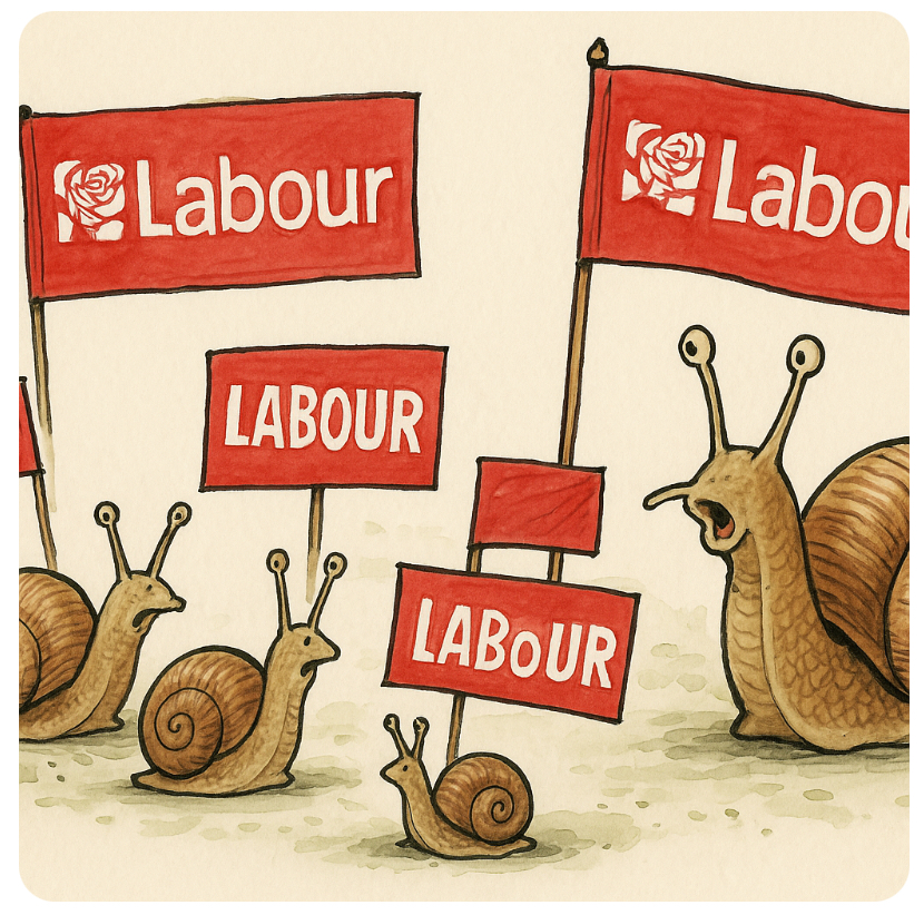 Labour’s energy used to roar. Now it hums quietly in committee rooms. Every policy is a maybe. Every statement is a hedge. Every bold idea is focus-grouped into beige oblivion. The country’s on fire — housing crisis, NHS collapse, public rage simmering like a bad kettle — and Labour’s response? “We’ll look into it.”