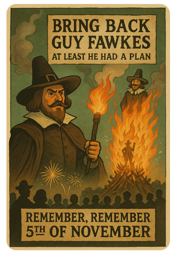 Fast forward to now, and itβs hard not to feel a pang of envy. The state of British politics makes a pile of gunpowder look like sensible reform. Weβve got leaders dodging accountability like itβs a sport, public services hanging by a thread, and entire generations priced out of heating, housing, and hope. If Guy popped up today, he wouldnβt need a match β the whole countryβs already smouldering.