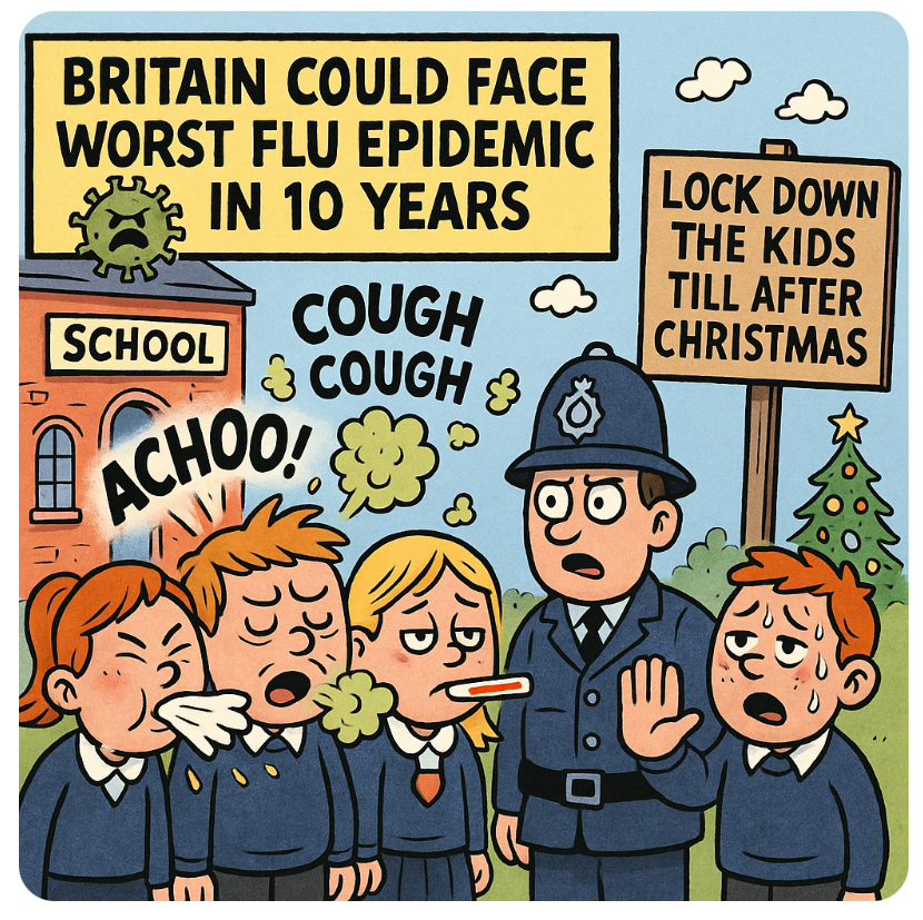Is it time to bubble-wrap Britainβs children until spring? Or are we just looking for another scapegoat while the NHS buckles and ministers play flu bingo in the Commons? Drop your hot take in the blog comments β bonus points for sarcasm, fury, or surreal flu prevention plans. ππ