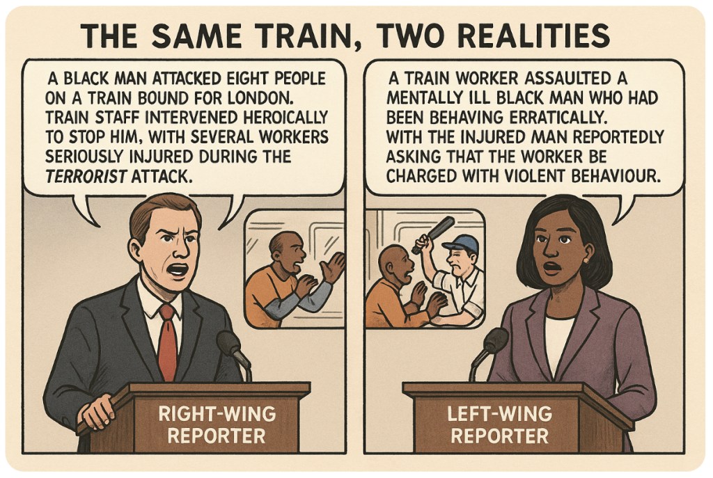 When a shocking event unfolds — say, a violent attack on a train — you might think the facts are simple. A man attacked passengers. People were injured. Police intervened. But what we see and believe about that event depends less on the facts themselves and more on who’s holding the microphone.