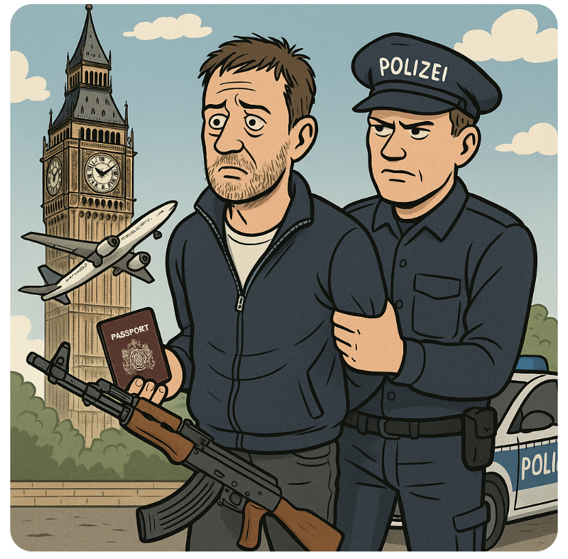 🇬🇧🔫✈️Ah, the classic British getaway: passport, snacks, and—wait, a Hamas-linked weapons plot targeting Jewish sites in Germany? That’s not in the travel brochures. A 39-year-old British man has been arrested for allegedly trying to make Europe’s worst group project happen—helping Hamas source weapons to attack Jewish targets on German soil. Because when some men say they’re into “history,” they apparently mean recreating it, tragically and violently.