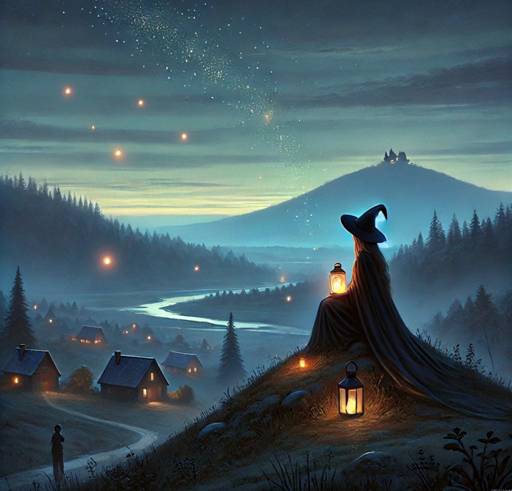 Long ago, in a wind-brushed land where the trees whispered secrets and shadows lingered long after sunset, there lived a witch atop a lonely ridge. She wore no black cloak, cast no curses, and stirred no cauldrons. Instead, she kept a garden of glass jars β each one filled with a flicker of light.