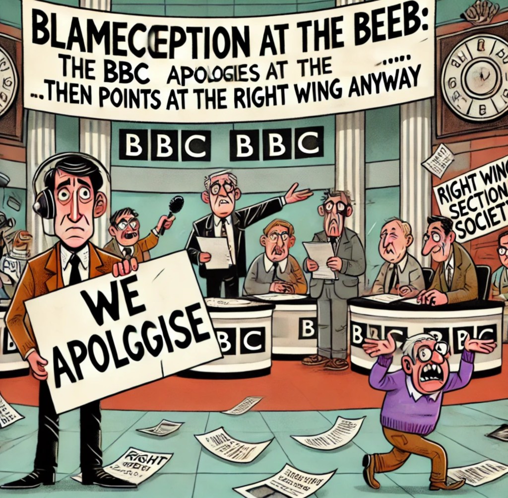 🎭📺🔥In the latest episode of “We Didn’t Do It, But Also Yes We Did, But Actually It Was You”, the BBC has managed to apologise with one hand while aggressively finger‑pointing with the other. According to them, an outrage directed at their own spectacular blunder is apparently the fault of a shadowy, hyper‑efficient “right‑wing section of society.”