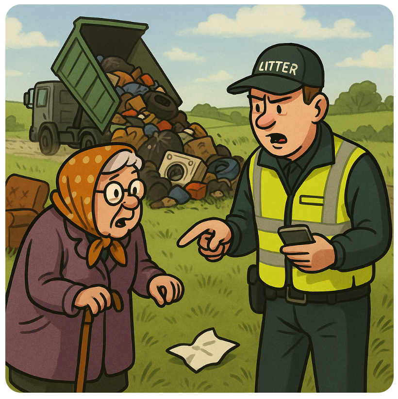 We’ve somehow built a system where minor littering is pursued with military efficiency, while fly-tipping on an industrial scale is met with baffled silence. Unless, of course, you’ve got a drone, a news crew, or a TikTok account — then it gets noticed.