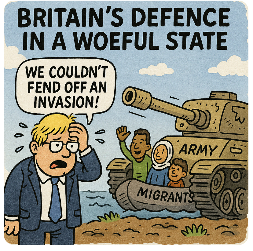 But here’s the spicy twist: if this is what an “invasion” looks like—fleeing warzones to reach a country famous for Greggs and weather-based sarcasm—then maybe it’s not the worst that could happen. At this rate, the biggest threat to Britain isn’t from outside forces—it’s our own leadership treating defence like a group project they forgot was due.
