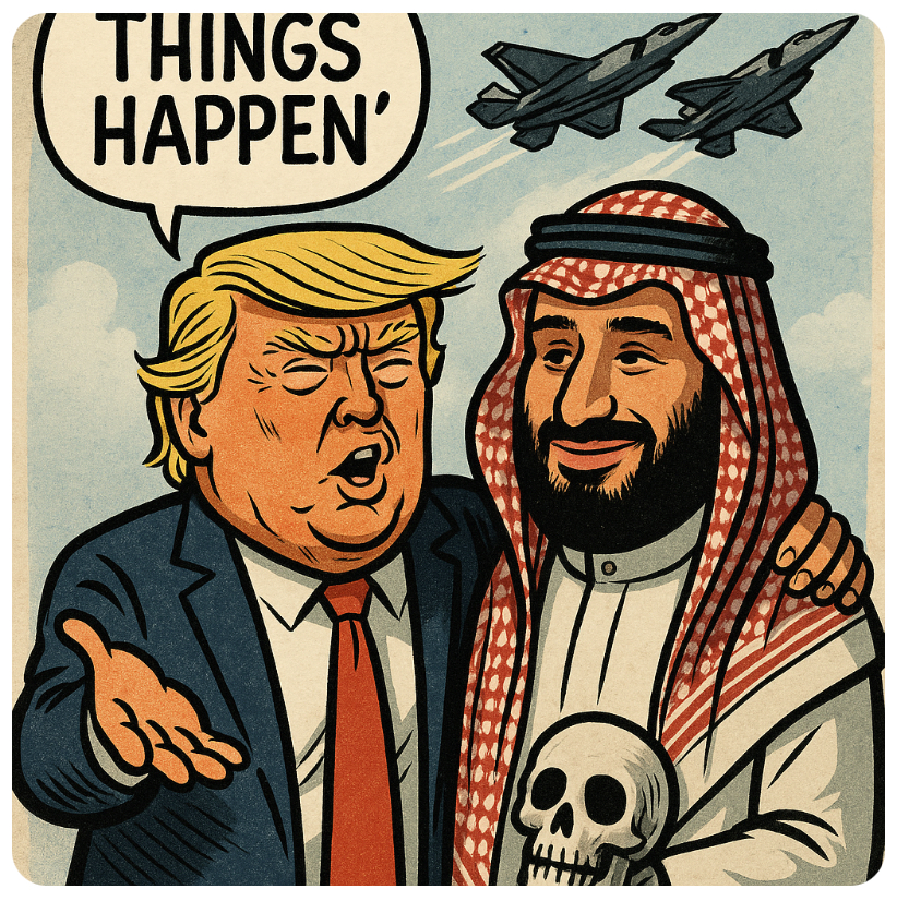 In a spectacle of geopolitical gaslighting at the White House, Donald Trump greeted Saudi Crown Prince Mohammed bin Salman with open arms, warm words, and a verbal rug under which to sweep the murder of journalist Jamal Khashoggi. “Things happen,” Trump declared with all the solemnity of someone excusing a coffee spill, not the state-sanctioned dismemberment of a dissident. Meanwhile, billion-dollar arms deals and Saudi investment promises twinkled in the background like the real guests of honor.