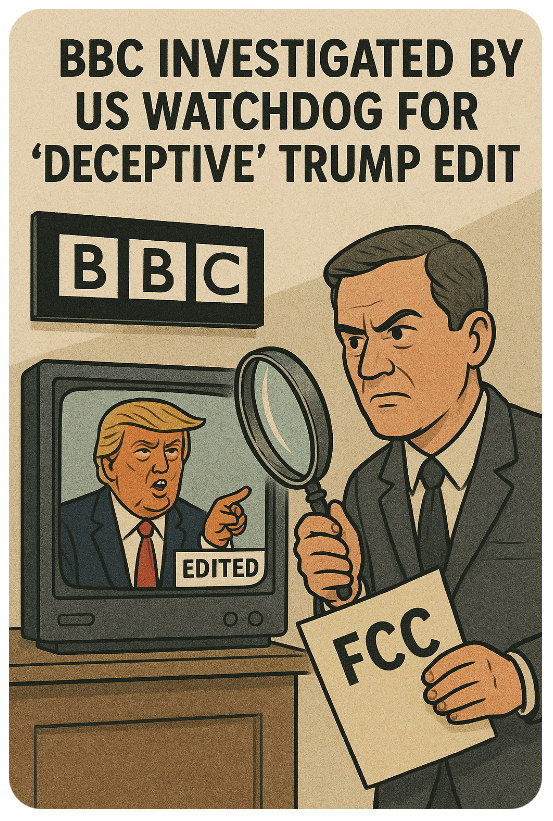 🎥🕵️♂️Turns out the Beeb’s idea of fair editing may not fly stateside. The BBC is now being investigated by the U.S. Federal Communications Commission (FCC) after allegedly giving one of Trump’s interviews the ol’ editorial spin cycle — enough, apparently, to trigger an official letter from the FCC chairman himself. When even America’s media watchdogs start sniffing around a British institution, you know the tea’s not just hot — it’s boiling. ☕🔥
