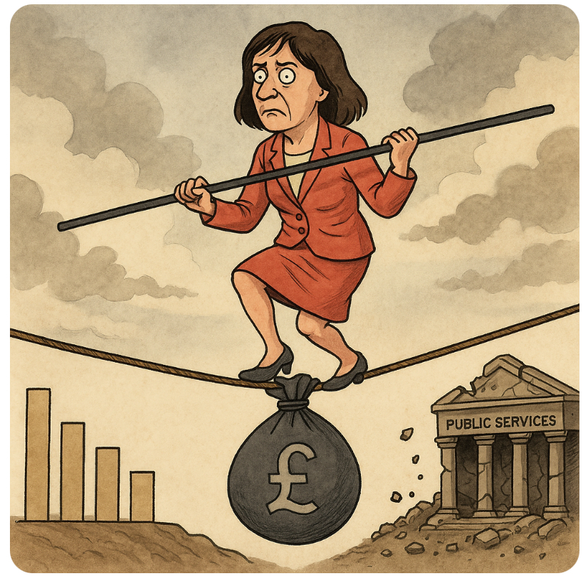 • Reeves runs smack into her own fiscal rules, now less like guidelines and more like a trap built by an Excel demon. Debt must fall. Day-to-day spending must move toward balance. And her only levers are: