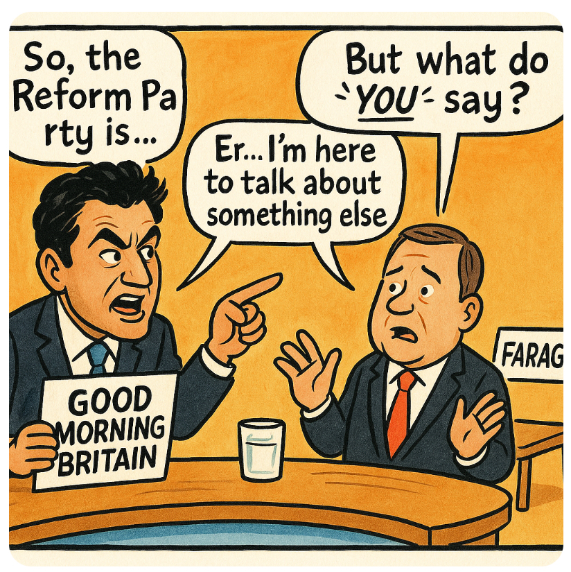 But what was remarkable today was the tactic: drag an unrelated Labour minister into the conversation and pressure her to endorse GMB’s anti-Reform narrative, even though the minister was on to discuss a completely different issue.