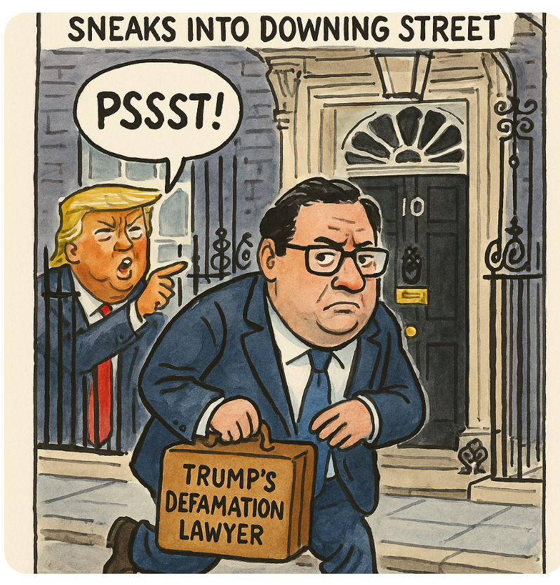 Cue the Downing Street spin cycle: “No no, this is all about Israel. Anti-Semitism. Memorials. Please stop asking questions.” Never mind that Garson is literally the same guy threatening the BBC and advising Trump’s legal team across multiple explosive defamation cases.