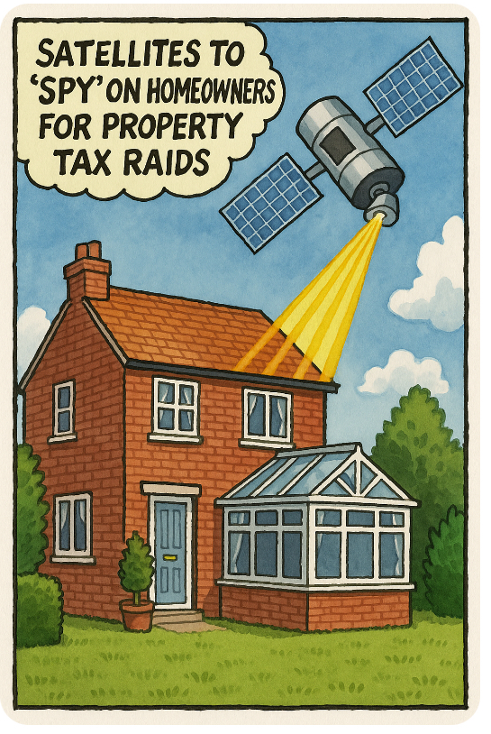 You thought you were safe? Think again. That modest orangery extension you put on in 2007? It’s now a taxable offense visible from low orbit. That converted attic with a Velux window? Say hello to a council tax bill that could fund an entire roundabout in Milton Keynes.
