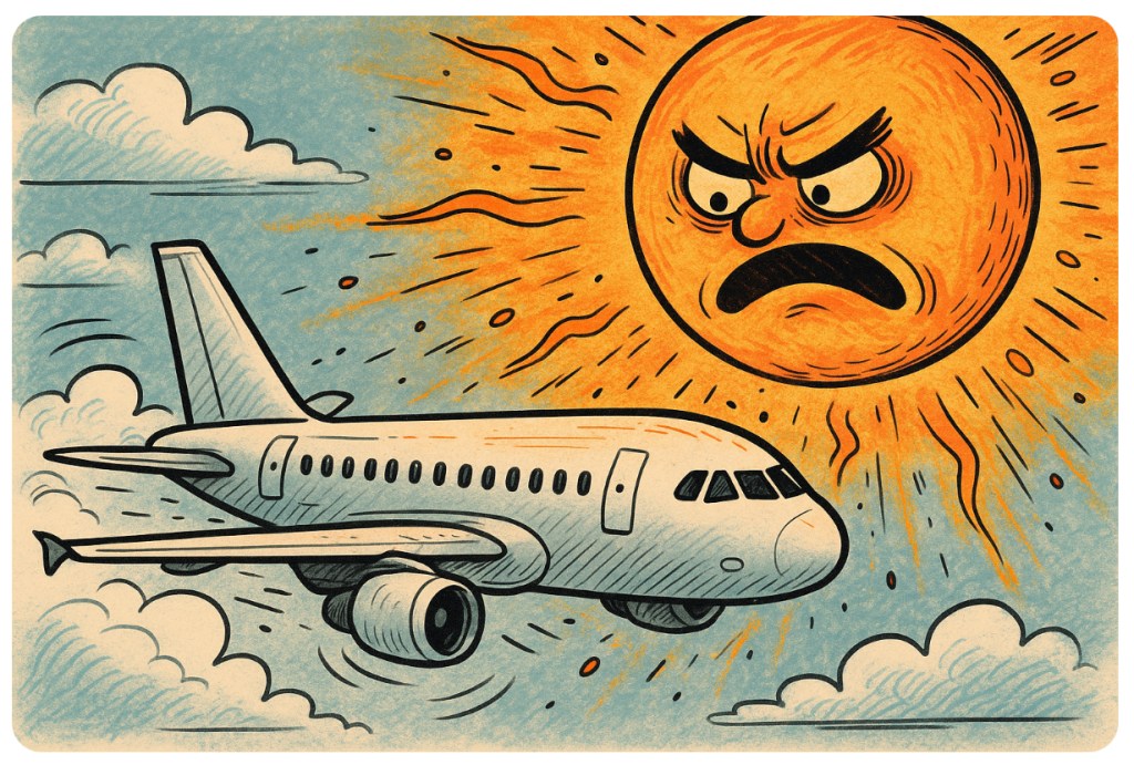 Modern aviation, meet ancient celestial rage. Turns out, in our race to build sleek, sky-slicing aluminum birds packed with digital wizardry, we forgot one tiny detail: the sun is a chaotic, flaming brute. And every now and then, it flings radioactive glitter at Earth just to remind us who’s boss.