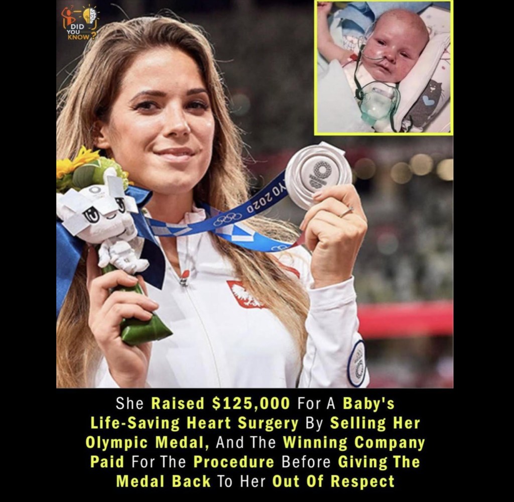 It wasnโt just a javelin Maria Andrejczyk threwโit was a lifeline, and it landed straight in the heart of humanity. Days after snagging silver at Tokyo 2020, Maria didnโt put her Olympic medal on a pedestalโshe put it up for auction. Why? To fund a desperately needed heart surgery for baby Miลoszek. The price tag? $125,000. The payoff? Immeasurable.