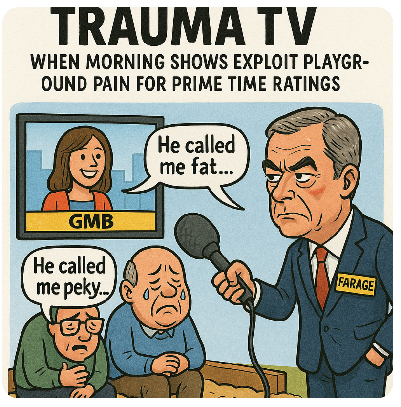 Imagine having decades-old school trauma, and instead of being offered therapy, youβre offered a microphone and a segment title like βFarage the Bully?β Thatβs not support β thatβs sabotage.