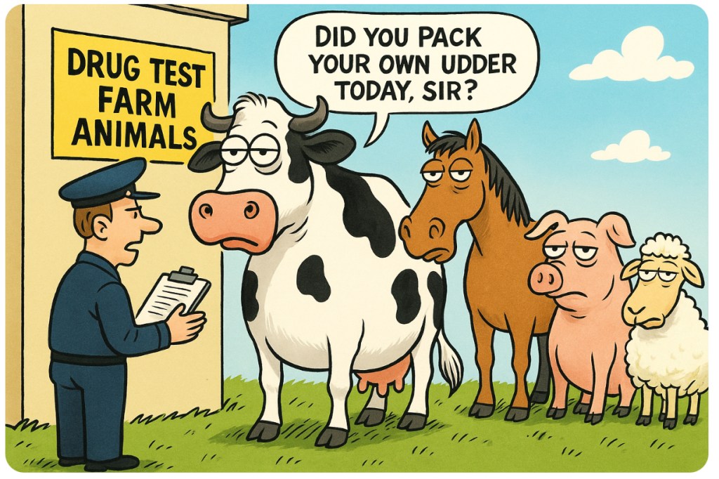 Governments are now reportedly considering drug-testing farm animals at borders. That’s right — security checks for Bessie.