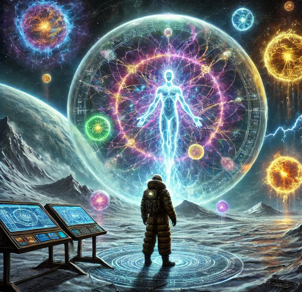 The figure was unlike anything in her star-charts: its form shimmered between matter and meaning. Filaments of white energy wrapped around it like drifting snow. Its eyes burned with calibrated precision, as though seeing the truth in every particle before it moved. And from its center emanated a resonance—sharp, resonant, slicing through illusion like a beam that could carve through frozen nebulae.